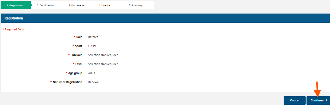 Since this is a renewal of the previous registration, no changes are made at this stage. Select ‘Continue´.