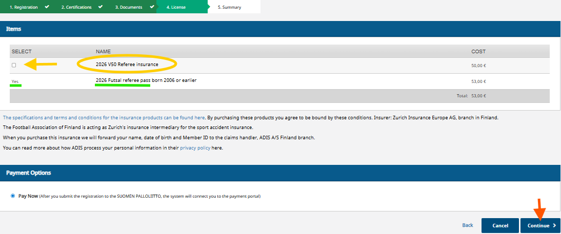 You can now proceed to pay for your player pass (referee pass).