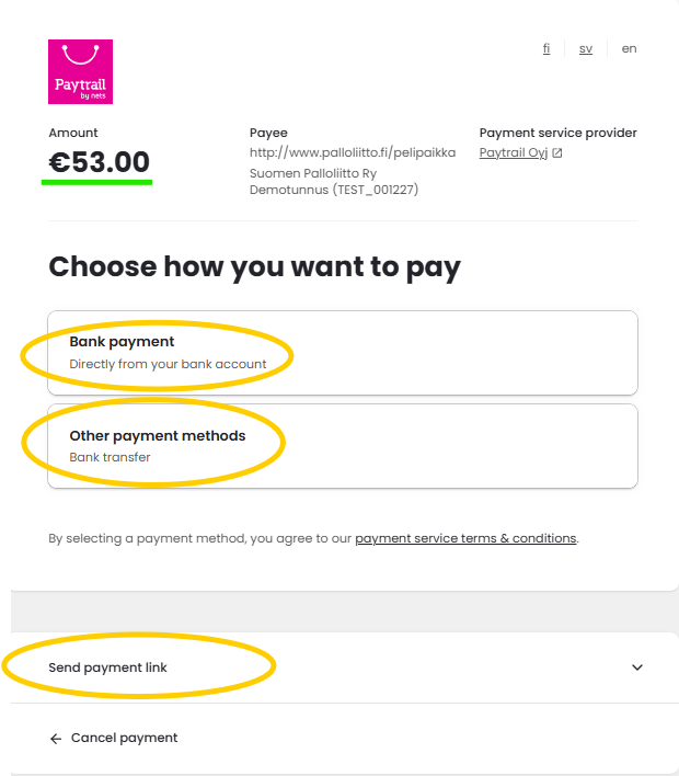 If the person does not yet have a player pass (pelipassi) paid for the current season, the system will add the player pass (pelipassi) fee.